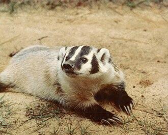 Badgers are medium-sized short-legged omnivores in the superfamily Musteloidea. Badgers are a polyphyletic rather than a natural taxonomic grouping, being united by their squat bodies and adaptions for fossorial activity rather than by their ancestral relationships: Musteloidea contains several families, only two of which include badgers; moreover, both of these families also include various other animals that are not badgers.