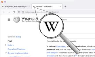 A favicon, also known as a shortcut icon, website icon, tab icon, URL icon, or bookmark icon, is a file containing one or more small icons associated with a particular website or web page. A web designer can create such an icon and upload it to a website by several means, and graphical web browsers will then make use of it. Browsers that provide favicon support typically display a page's favicon in the browser's address bar and next to the page's name in a list of bookmarks. Browsers that support a tabbed document interface typically show a page's favicon next to the page's title on the tab, and site-specific browsers use the favicon as a desktop icon.