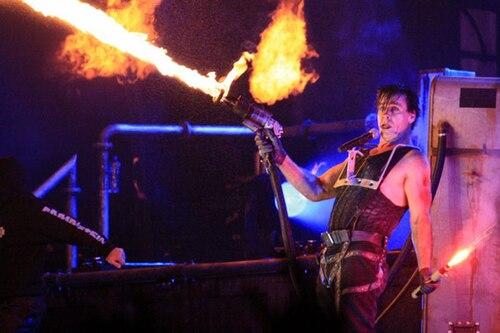 Industrial metal is the fusion of heavy metal and industrial music, typically employing repeating metal guitar riffs, sampling, synthesizer or sequencer lines, and distorted vocals. Prominent industrial metal acts include Ministry, Nine Inch Nails, Fear Factory, Rammstein, KMFDM, and Godflesh.