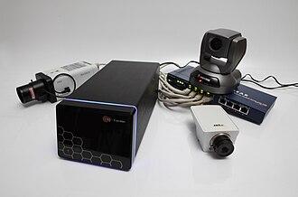An Internet Protocol camera, or IP camera, is a type of digital video camera that receives control data and sends image data via an IP network. They are commonly used for surveillance, but, unlike analog closed-circuit television (CCTV) cameras, they require no local recording device, only a local area network. Most IP cameras are webcams, but the term IP camera or netcam usually applies only to those that can be directly accessed over a network connection.