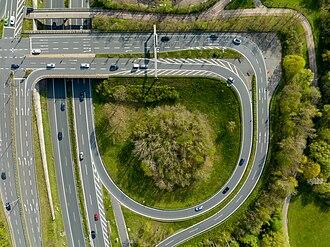 A road is a thoroughfare from one place to another, primarily used for movement of traffic. Many roads are paved.