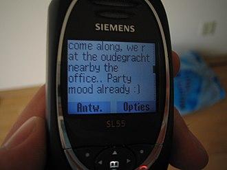 Short Message Service (SMS) is a text messaging service component of most telephone, Internet and mobile device systems. It uses standardized communication protocols that let mobile phones exchange short text messages, typically transmitted over cellular networks.